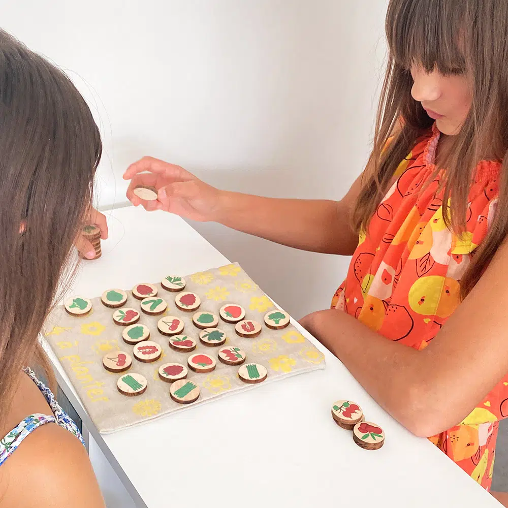 Ces variantes permettent d’ajuster la difficulté en fonction de l’âge des enfants, mais aussi de développer d’autres aptitudes : travailler la mémoire, le concept d’association, la représentation dans l’espace, la motricité fine (avec la préhension des pièces) et d’autres principes inspirés de la pédagogie Montessori…