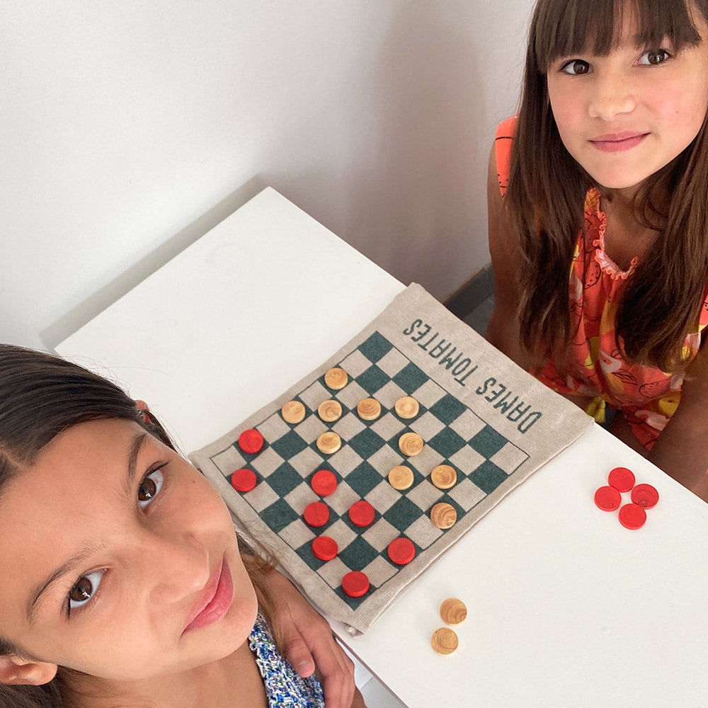 Au fait, savez-vous d’où vient le jeu de dames ? Les origines de ce très ancien jeu de société remontent au Moyen-Âge. D’après l’historien espagnol Josep Brunet, le jeu de dame médiéval est né de la transformation du jeu « Marelle de douze », un jeu espagnol très connu à l’époque et décrit par le roi Alphonse X de Castille dans le fameux Livre des jeux. Le jeu de dames médiéval était aussi à la croisée des chemins entre deux jeux classiques : le backgammon et les échecs. En effet, les pions rappelaient ceux du backgammon de l’époque et le plateau rappelait l’échiquier du jeu d’échec. Initialement, le plateau des jeux de dames comportait 64 cases (comme le damier de notre jeu Dames Tomates et comme les plateaux de jeu d’échecs) et non pas 100 cases, comme les versions plus courantes des dames françaises. Dames françaises à ne pas confondre avec le jeu de dames chinoises, un autre jeu classique qui se joue avec des billes de verre sur un plateau rond ou hexagonal sur lequel est dessiné un espace de jeu en forme d’étoile à six branches, et qui peut se jouer à deux ou trois joueurs. Devenus depuis des incontournables des jeux de société, les dames se présentent aujourd’hui fréquemment dans des coffrets multi-jeux pour les enfants, mais beaucoup plus souvent avec des pièces et un plateau en plastique plutôt qu’en bois de buis.